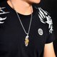 商品特色与规格 型号:NLAJA1369N 总长:61cm 饰片尺寸:长约7cm*宽约6cm 饰片材质:澳洲锌原矿镶嵌纯银 项链材质 : 不锈钢 金属项链风格极致、率性呈现。 饰品融合古银染黑作旧工艺。 T恤或是休闲衬衫皆可穿搭