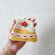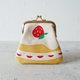 这是一款以丝网印刷染制帆布而成的草莓蛋糕造型口金包。