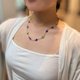 接下来介绍超过18英寸的长项链有多种类型,一般来说配戴超过48厘米(20英寸)的项链,风格越强烈。这类项链善于衬托不同领口、风格的上衣搭配及上半身的层次感,在不同的社交场合中能够有华丽时尚的视觉又不失优雅风采的穿搭。