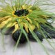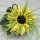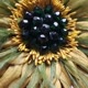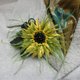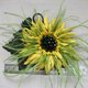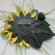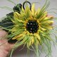 这款聪明又充满节庆氛围的向日葵胸针,中央镶嵌着一颗璀璨的玻璃珠。周围点缀着蓬松的鸵鸟羽毛、墨绿色的叶片,以及一颗含苞待放的花蕾。