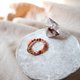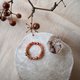 - 南红玛瑙与橙石榴石的红橙色泽热烈鲜明,如同燃烧的火焰。 金珠添上光亮,使激情中带有一份温柔的暖意。