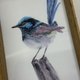 蓝色小鸟水彩画作 连画框 作品尺寸:102mm x 152mm 含框: 110mm x 160mm