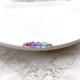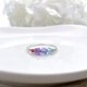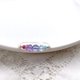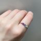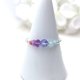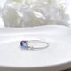 这是一款以坦桑石为中心,将蓝色、紫色、粉色系天然宝石以渐变方式连接起来的绕线戒指,设计简约而柔和。