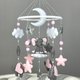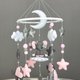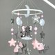 用这款手工制作的大象婴儿吊饰为您的女宝宝婴儿房增添一抹甜美气息,采用柔和的灰色、腮红粉和闪亮银色调。