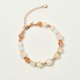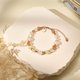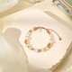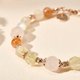 这条手链以 金发晶、金太阳、粉晶与白月光 串成,