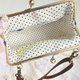 使用低调奢华的天鹅绒,手工拼接金色双线和烫金棉,为包包增添了分轻熟、时髦感,中间还有珍珠装饰,象征优雅气质,更偷偷的透露着少女心。
