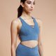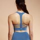 此款为V领胸下宽版的长版运动内衣,前胸若隐若现版型较为集中,背部缀以细条展现女性柔美。