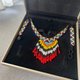 这件作品不仅是饰品,更是文化的记忆载体——每一颗珠子都诉说着手工的温度与族人的故事,象征“以色彩编织灵魂,以传统创造永续”。项链是以多色番珠(压克力珠)手工编织而成,色彩鲜明、光泽细致。全程手工完成,工序繁复、需高度专注与技巧。传统工艺师已渐凋零,已难再现,此条乃独一无二的作品。