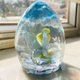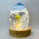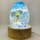 这款以Tinker Bell小叮当仙子为主角的滴胶夜灯,充满童话般的梦幻气息。作品最上方是深蓝色的云层,营造夜空般的氛围;中间部分则是小叮当仙子坐在由UV胶手作的花椅上,巧妙搭配泡泡球与珍珠装饰,为整体造型增添精致感。底部以翠绿色萤石铺设出宛如森林草地的场景,再结合灯座,创作出一个充满魔法感的小夜灯。