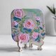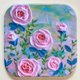 此幅画为《玫瑰花园》,原作采用石英砂与压克力颜料,立体技法呈现玫瑰花瓣,充满浪漫氛围。