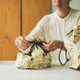 - 首度结合台湾知名插画家、生活风格家米力的绘画元素,以台湾为灵感,描绘原生种的黄色相思树、大稻埕的生活物件…以薄布制作的束口旅行衣物袋,有两种尺寸。隐藏式袋底的制作,让看似轻巧扁平的提袋,束口展开后意外拥有大容量!