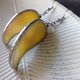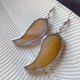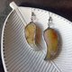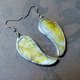 Yellow stained glass earrings with pepper curl shape (made of glass, copper foil/tin hand soldering).