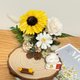 索拉向日葵、永生玫瑰、永生百日草、原木茉莉、法国白梅、绣球花、卡斯比亚、姬蕨叶、兔尾草、松果、钮扣菊