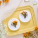 由接近黄丹的鲜亮美丽从白梅的纯洁当中跳脱而出