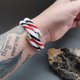 黑色、白色和红色的项链和手链均由捷克珠制成。