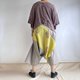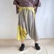 这款三角裤型的裤子,穿着感极为舒适。采用两种布料,份量感十足,版型宽松。腰部设计参考了称为“西藏裙”的款式。侧边的绑绳可调整腰围,并将多余的布料在前侧打结。其中一侧的绑绳改为钮扣设计,您可以根据自己的腰围调整钮扣的位置。