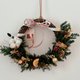 使用花材:金色木玫瑰1朵、不凋雪松、松果、果实类、棉花、肉桂棒、干燥橙片,依季节选用适合干燥花材来搭配