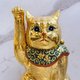 招财猫颈部更佩戴一条精致的项圈,项圈以深邃的墨绿色为底,镶嵌金色漩涡纹饰
