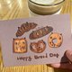 - 原创设计法式牛角包法棍妖怪猫魔幻生日卡happy bread day