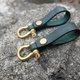※使用较厚牛皮制作而成,并考量到人的使用习惯,大小一手可以掌握或轻易放进口袋。由于钥匙圈为每天使用必需品,与人手的时常接触会让它表面越来越油亮与柔软。