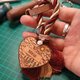 中央是一枚**手工压印皮革心形吊坠**,刻有山脉、树木图案,并预留空间刻上您的**名字、缩写或单字**。