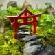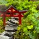 红色鸟居立于青苔与碎石之间,石阶延伸向小小的绿境,