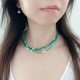 • 蓝绿色水晶与白色淡水珍珠的清新配色,充满夏日海洋气息。