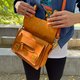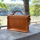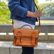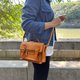 該款包包是一個經典的郵差包,方方正正。為了使包包更具特色,我們採用了大顆精緻五金飾扣去做裝飾。我們用了大大的圓柱拉鍊頭,使拉鍊看起來更特別;大顆厚實古銅鉚釘配上古銅大方扣,在精緻中隱藏著一絲粗獷。我們精選2.0MM頭層環保植鞣牛皮製作。這種皮料質地細膩,粒面豐滿,柔軟又有彈性,摸起來很有質感。同時這種皮料最大的特點是“變色”,包包用久了皮料顏色會慢慢變深變亮,越用越有光澤,復古味道更濃鬱,我們俗稱“養牛”。