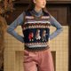 自创了ladybird和两位小lady的形象,可爱童趣,复杂的多种提花,包括蓝色的那条麻花是立体的,整件选用非常软糯的高含量美丽奴羊毛材质,加上工艺复杂,做起来费时费力 成本较高,但是市面上很难找到这样好看的背心了,可以说是我们开发针织品的一个里程碑式产品,底色是藏蓝色,点缀了粉色红色浅蓝绿色,非常复古,虽然很花但是整体上是很好搭配的,纯色打底或者花色格纹衬衫都可以,牛仔裤或灯芯绒裤都可以 也可以搭配连衣裙,码数方面比较宽松,按平时尺寸购入即可