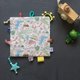 每块安抚巾搭配8种不同材质、宽度、形状标签,