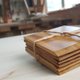 这批杯垫是使用老厨柜退休拆下的背板去制作。