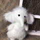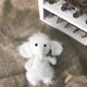这只滑稽可爱的白色小象由蓬松的毛线手工编织而成。 该 它填充了低过敏性材料,对儿童安全无害。 玩具高 15 厘米。 小象可以站起来。 眼睛是玻璃材质。