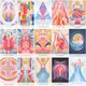 在这个万花筒般的梦幻世界中,80 幅抽象绘画由色彩斑斓的形状与几何图案组成,鼓励开放式解读。虽然牌面人物呈现女性特征,但作者无意强化性别二元对立,而是希望通过色彩、形态与符号的节奏交融,传递阴阳能量的互动。