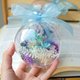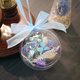 .透明球里有不凋绣球花、不凋木满天星、兔尾草、雪花、不凋姬蕨、蓝+紫色系花材