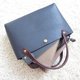 ◎以柔软的深海军蓝荔枝纹牛皮,搭配酒红色的光滑皮革提把,营造出沉稳的氛围♪