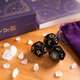 搜集占星骰子的最佳选择,这个套组包括了天然“黑曜石”材质所制作的占星骰子、方便携带的收纳袋以及净化用的碎白水晶,让你可以轻松扩充骰子收藏。