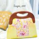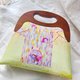 插画订制精致斜纹棉布料+木头质感口金的手作包包