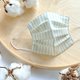 这是使用肌肤友好的纱布材质制成的自然色调的条纹子供立体褶皱口罩。