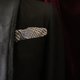 西裝口袋巾一直在男士服裝搭配中佔據著重要的地位。紳士善於運用口袋巾來改變西裝刻意深沉的一面,有人說口袋巾要比領帶要來得有格調。這句話說的一點都不錯。口袋巾與生俱來的趣致與優雅氣息是誰也無法比擬的。口袋巾非常的多變,它不僅適合於正式的場合之中,休閒的場合一樣也能勝任,折疊之後插入西裝上衣胸部的衣袋的一塊正方形織物,是由西方上流社會流傳的一種正式著裝要求。一塊精挑細選,洗淨、燙平、折疊好的口袋巾,能凸顯你的品位和身份,幫你營造出正裝服飾中最優雅的角落。