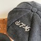 这顶帽子的布料来自一件带军装元素的复古工作外套。