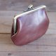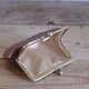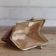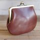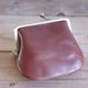 方形设计的植物鞣革口金包。 材质:牛皮(植物鞣革) 颜色:巧克力色 五金:古铜色 内衬:米色(人造丝) 尺寸:高 110mm × 宽 112mm(口金宽 105mm) 产地/制作方式 日本制造,手工制作