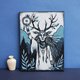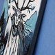 神秘的山萨满卡是世界边界上的生物。她的外表结合了人类和鹿的特征:她的五官显示出一种狂野,原始的美丽,她的头部加冕有分支的鹿角装饰着第一个春天的叶子。她似从周围的风景中走出来:山、草和森林与她的剪影融为一体,强调了她与自然的统一。