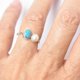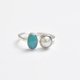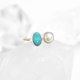 这款雅致的银戒指镶嵌着生动的欧泊石和光泽莹润的淡水珍珠。欧泊石呈现出迷人的蓝绿色火光,随角度变换色彩,令人联想到深邃海洋的神秘光晕。欧泊石稀有且蕴含天然水分,是真正独特的宝石。