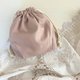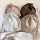 綿/麻のキャンバス生地を使用し、サイドに角度の違うタックを2本入れて仕上げた巾着ポーチです。