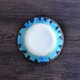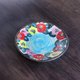 中央にターコイズブルーの釉薬を掛けて、湖水を表現し、その周囲に椿を描きました。