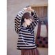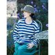 三组色彩,深色的是藏蓝条,她比日常的黑白条来的更有细节感。艺术的是湖蓝,适合做色彩的大胆碰撞,与绿色系蓝色系,都很美好。而氛围的是奶茶,她搭配棕色大地系的外套裤子会极美。中型的条纹,浅色与深色相对而言,条纹,有了更多的秩序感。