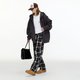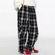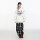 [设计说明:弯刀格子长休闲裤/采用棉涤再生纤维素纤维混纺面料柔软亲肤与透气吸湿性。贴合肌肤时温柔无刺激。具备良好的透气性。联名插画师matsui的小狗刺绣、毛绒贴布绣灵动可爱,为整体增添趣味活力。创意花朵刺绣精致吸睛,丰富视觉层次。弯刀版型巧妙修饰 腿型,打造流畅线条,让穿搭兼具个性风格与实用功能性。]