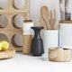 中段以白色环氧涂装的山毛榉木制成,下段是欧洲可永续采伐的橡木制成,表面具有轻盈无光泽的涂装,保护木质表面免于油污水渍蹂躏;辅以丹麦领导品牌 Crush Grind 的陶瓷研磨核心,又是一项 .wireworks专注于选材集成的经典作品。