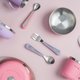 搭配专为六个月以上至两岁孩童设计的小叉匙组,让孩子能提早开始学习吃饭的乐趣。