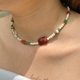 全新手工项链,充满活力地融合了大地色调和自然纹理。添加一点绿色和土棕色,并带有一丝半宝石。非常适合为任何服装增添一抹自然风格的优雅气息。